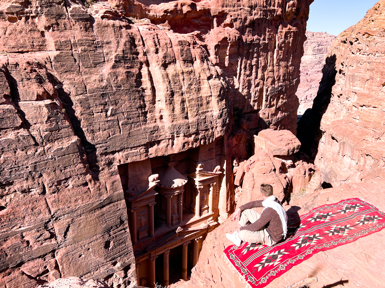 Pétra mérite deux jours au moins pour en faire le tour principal. Après une magnifique journée hier, nous retournons sur le site archéologique pour prendre de la hauteur et admirer Pétra d’en haut. On finira la soirée avec des guides locaux dans une cave bédouin pour un souvenir inoubliable malgré l’annulation de Pétra by Night.