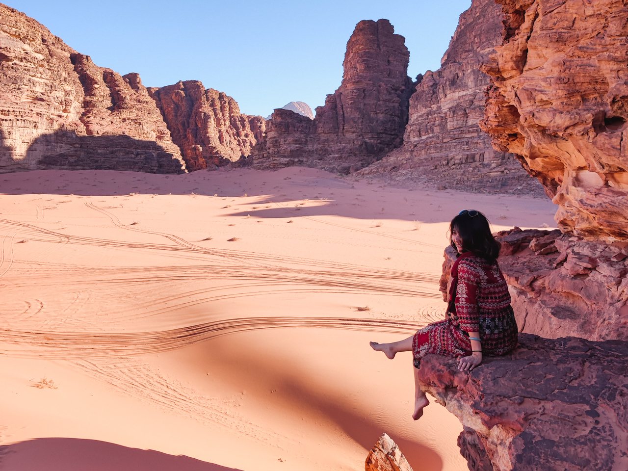 Après une matinée dans l’avion et des procédures COVID compliquées, nous arrivons à Aqaba au Sud de la Jordanie. Premier contact avec ce pays du Proche Orient, nous récupérons la voiture de location et conduisons jusqu’au trésor du pays, raison principale qui a déclenché notre voyage jusqu’ici, la cité perdue des Nabatéens de Pétra. Le site qui fait partie des sept nouvelles merveilles du monde à la hauteur de sa réputation est absolument envoutant.
