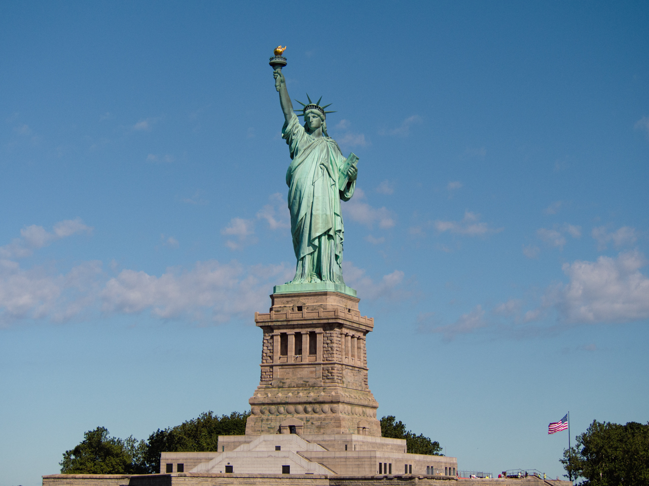 Après une journée de shopping pour se protéger de la pluie, c'est avec le retour du soleil que l'on part à la découverte d'un des emblèmes des Etats Unis, la Statue de la Liberté, cadeau de la France pour les cent ans de l'indépendance des USA. On continue notre exploration de cette ville et de ses différents quartiers avant de conclure la soirée dans un théatre de Broadway.