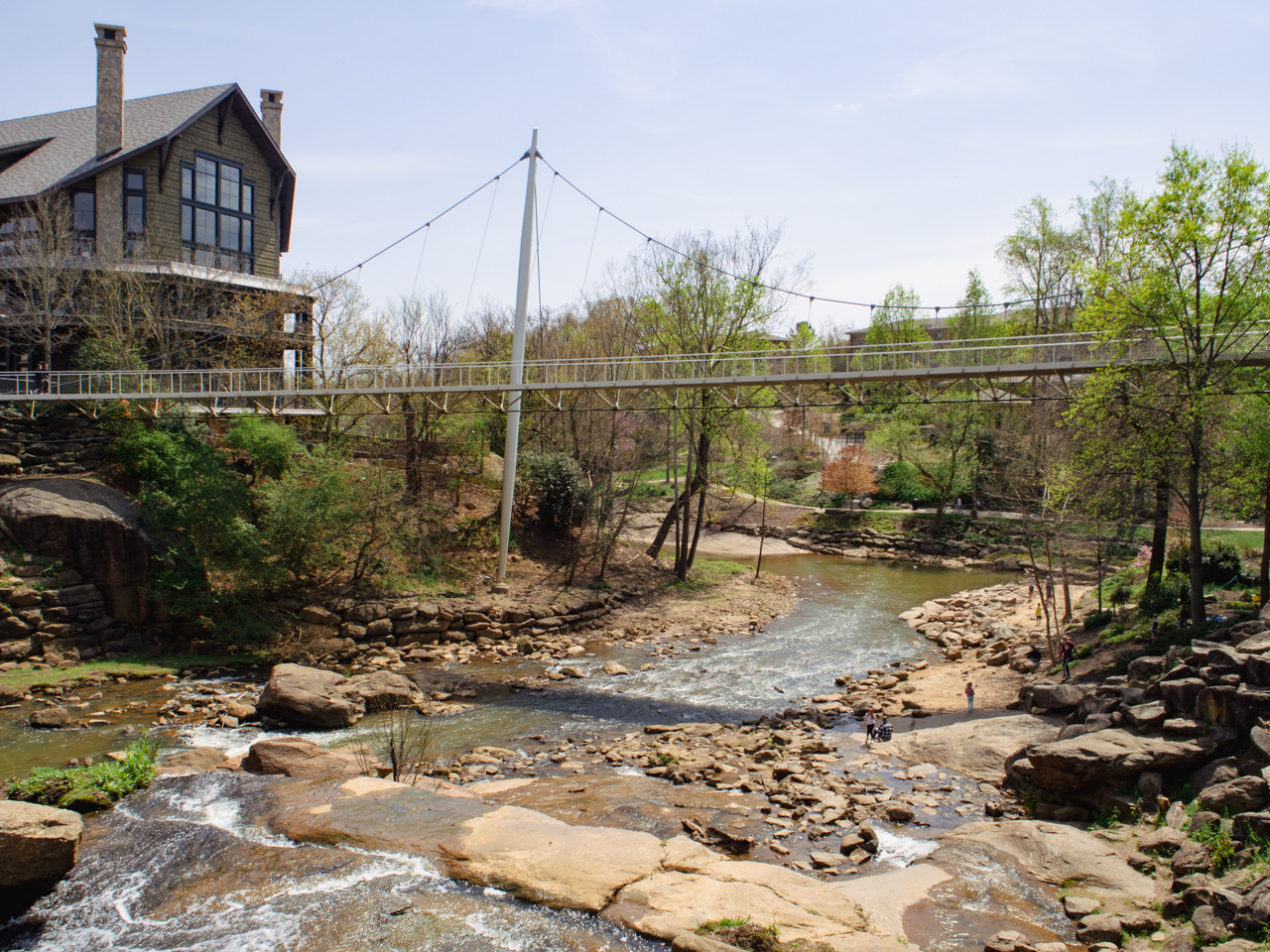 Depuis la vibrante Charlotte, on file sur l'interstate I-85 jusqu'à Greenville, ville industrielle de l'Upstate de la Caroline du Sud qui est la prochaine étape de notre voyage. Au pied des Appalaches, son centre ville est mignon avec ses maisons de brique. Sa principale attraction est le parc Falls avec le pont suspendu qui enjambe la rivière Reedy.